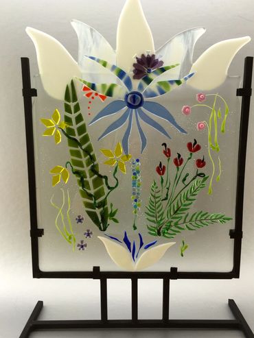 My style is unique. If you are drawn to the medium of glass then please take a look around. My art is made with a specialty glass called system 96. This is a fancy way of saying my art work is made from a glass that will never fade and when melted in the kiln will adhere to itself. Most pieces have undergone several kiln firings to create a 3-D effect.